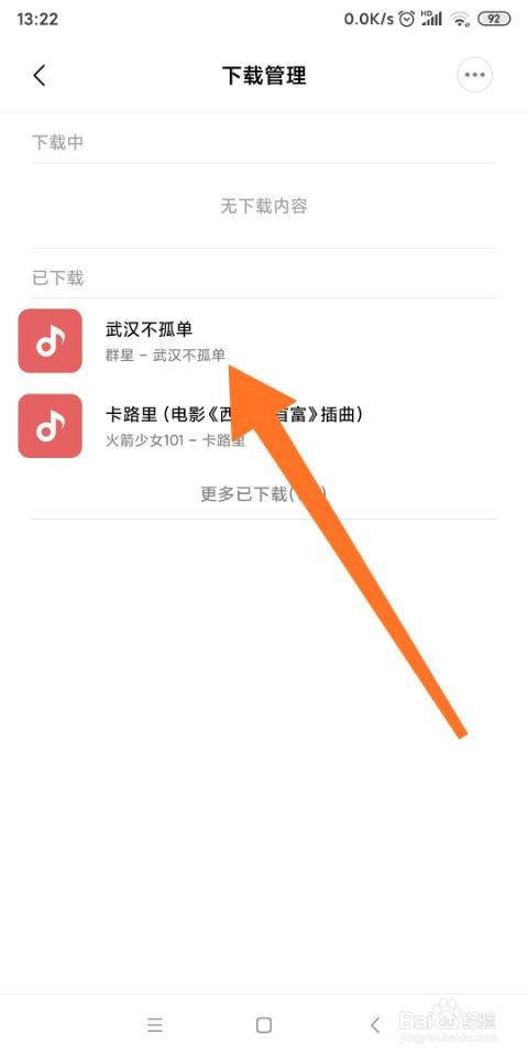 9.如图所示,我们看到我们已经将这首“武汉不孤独”下载到我们的手机中了。