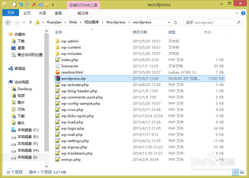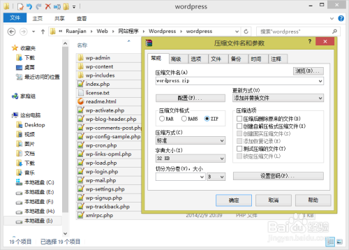 全选WordPress目次下的所有文件,点击右键,选择“添加到压缩文件”。勾选"ZIP"格局,然后点击“确定”按钮,可以看到压缩后的wordpress.zip文件,