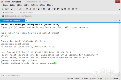 下载多个文件(2):打开Xshell并毗连本家儿机,输入”cd /home“并按Enter键;再输入”zip -r www.zip www“并按Enter键,把文件夹www打包当作www.zip压缩包,