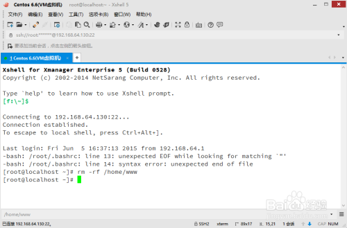 删除多个文件:当要删除一个目次下的所有文件时,直接在Xftp中删除会很慢。好比要删除/home目次下的www文件夹,打开Xshell并毗连本家儿机,输入”rm -rf /home/www“并按Enter键即可。打开Xftp,进入/home目次,刷新一下,可以看到www文件夹已经被删除了,若是需要www文件夹,再新建文件夹www即可。
