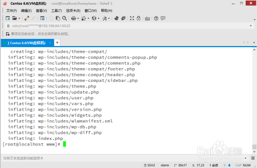 解压wordpress.zip(1):打开Xshell并毗连本家儿机,输入“cd /home/www”并按Enter键,再输入“unzip wordpress.zip”并按Enter键解压,