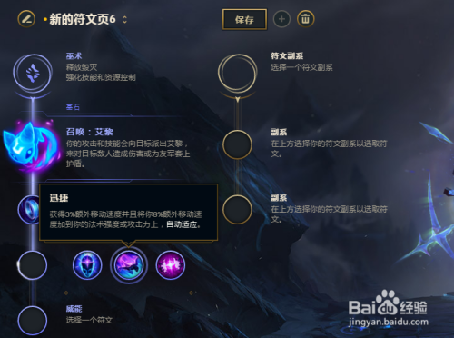 然后选择迅捷,可以提升艾克的移动速度,而且还会降移速转化为伤害,是一个非常适合艾克的符文,有利于艾克打出三环被动。