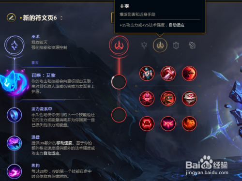 副符文选择主宰系,这样艾克的伤害会更高,因为这个系列的符文对于伤害加成还是不错的。