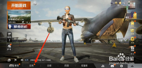 3、在人物游戏本家儿界面下方找到并点击【使命】。