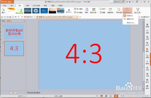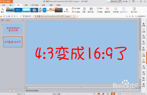 这里页面酿成的宽屏也就是16:9的页面了,反之也可以酿成4:3的,试着操作一下吧。