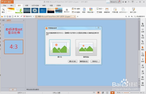 选了16:9之后,就会弹出一个页面缩放选项的窗口,这里我们选择确保适合,确保内容都在界面之内,如图:
