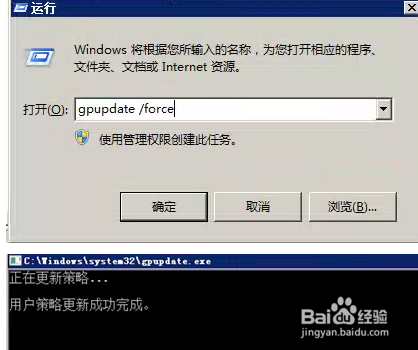 开始菜单--- 运行--- 输入 gpupdate /force 强制刷新,如下图设置