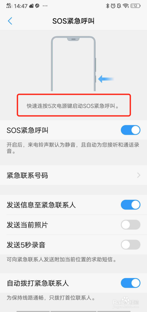 8、毗连5次电源键即可进行【SOS告急呼叫】。