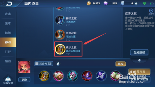 对于中单安其拉来说,前期长短常强势的,尤其是清兵的能力,所以,我们需要在前期清完兵之后快速帮忙上路,那么我们前期就需要买个疾步之靴,这个是为了离开疆场后快速移动的。