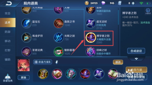 然后我们该出博学者之怒,这个装备其实没有过多的寄义,就是为了增添神通危险,此时一般是中后期了,安其拉作为法师的神通危险仍是要有的,所以,我们出博学者之怒就是为了增添法强。