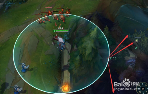 然后在这两个箭头之间的石头线上点击即可远距离放眼到草丛