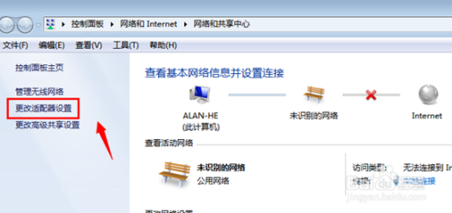 若是新建好宽带毗连之后,怎么打开呢。打开收集和共享中间找到“更改适配器设置”如下图