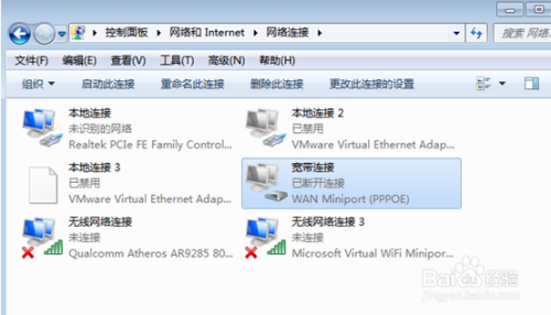 打开之后能看到当前电脑本家儿机的网卡毗连,此中有一个宽带毗连。如下图位置所示
