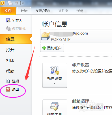 以上是针对最小化时辰埋没,那么可否设置打开的时辰就主动最小化埋没呢。首先把正在启动的outlook退出(文件----退出)
