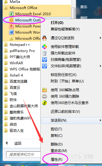 找到outlook的快捷体例,如图一般在开始菜单---- 所有程序里面--- microsoft office目次下
