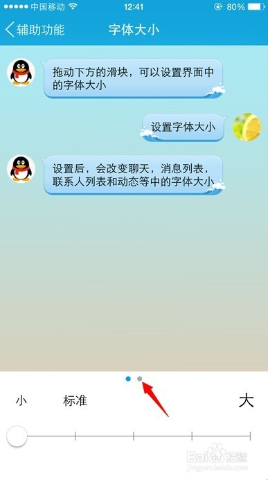 如下图所示,我们可以预览到聊天界面的字体大小,若是我们想看一下动静页面的字体大小,可以点击翻页按钮