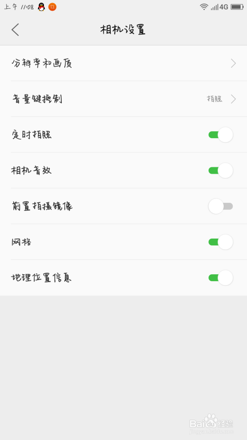 在这里我们可以设置前后镜头的像素。手指点击前后置镜头照片。