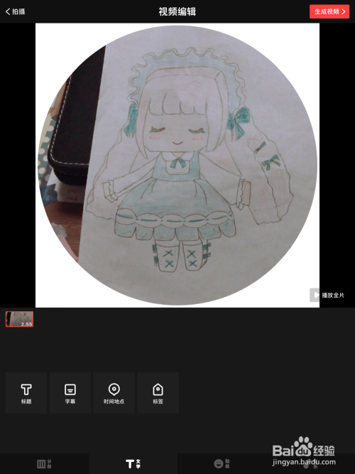 此刻我们可以对视频进行编纂。我们细心不雅察,找到最下面一排,找到第2个文字的图标。手指点击它。