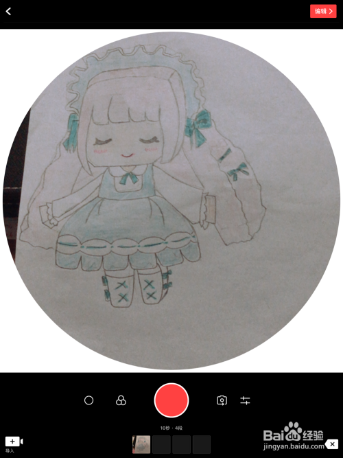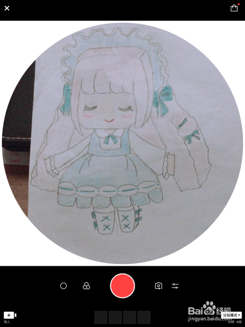 界面切换,我们细心不雅察界面。将摄像头瞄准拍摄物。点击中心的红色按钮,进行录制视频。
