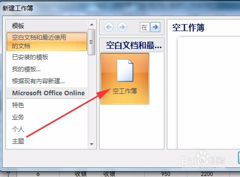 单击“空白文档和最近使用的文档”列表框中的“空工作簿”选项。