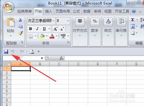 单击空工作簿快速访问工具栏中的“保存”命令。