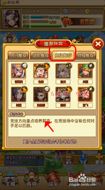 高级组合保举,都是红色武将。下方有武将阵型搭配保举。