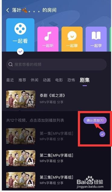 点击您要看的剧集的某一集,点击”确认添加”