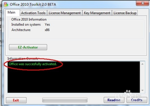 - 除此之外,office 2010 toolkit东西还供给了秘钥备份东西,点击license backup 找到backup即可进行备份