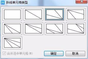 选择一种您要的斜线单位格的类型,这里我选择两条斜线做规划。点击第三个,然后点击确定