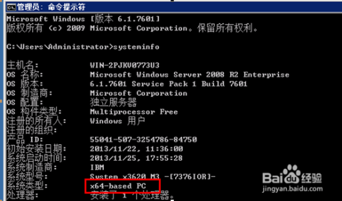 经由过程号令提醒符,systeminfo查看