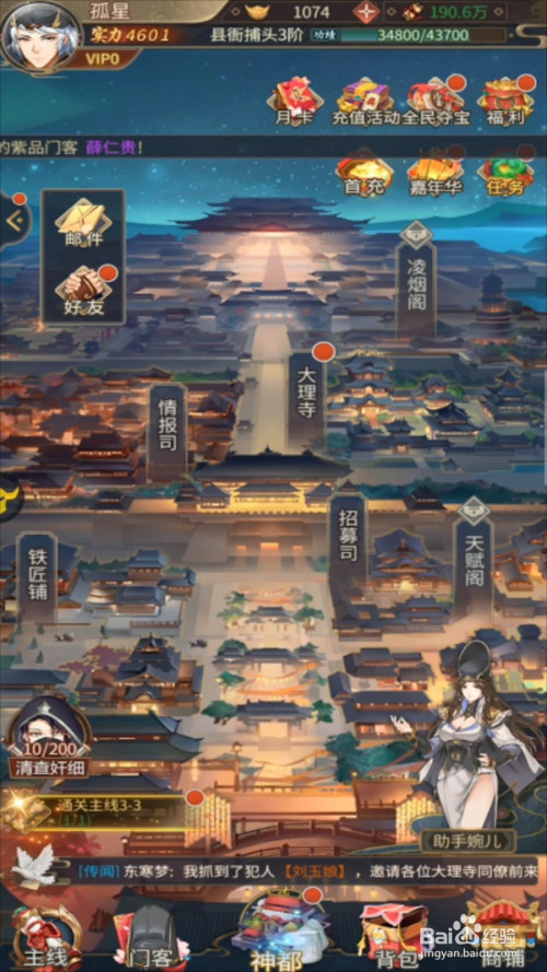 首先,进入到神都探奇的游戏中。