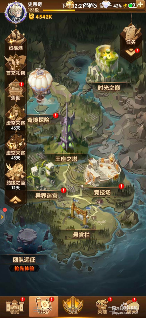 1、进入最新版的剑与远征点击下方的【野外】选项按钮。