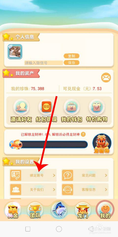 4.接着点击【绑定账号】