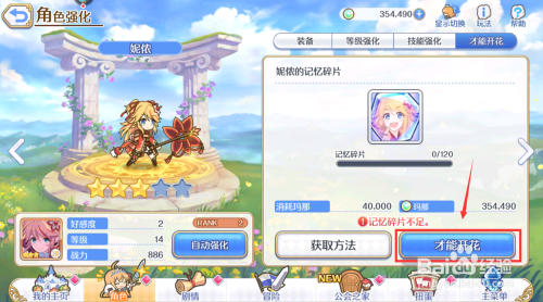 最后,可以对脚色进行才能开花,才能开花需要耗损指定脚色的记忆碎片,记忆碎片可以经由过程商铺或者摸索冒险获得。