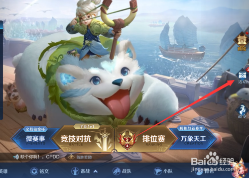 打开王者荣耀游戏后,点击右侧的活动。