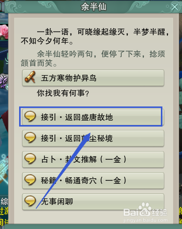 点击【接引·返回盛唐故地】按钮。