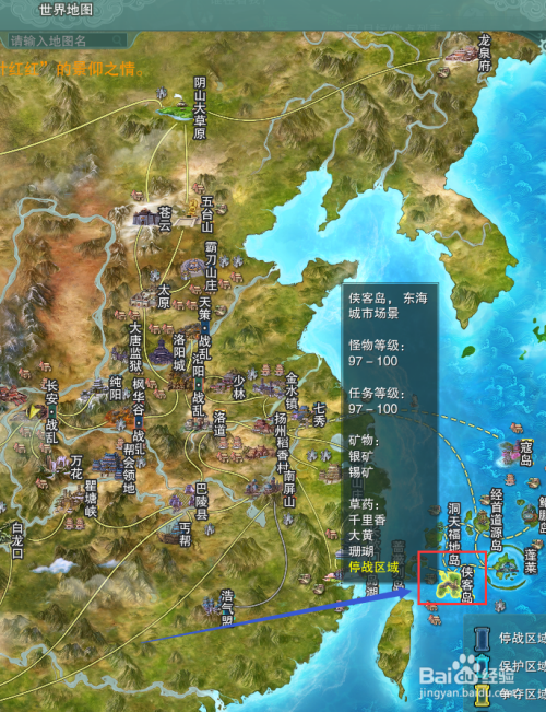 进入游戏后,我们点击【神行千里】后在地图里选择【侠客岛】。