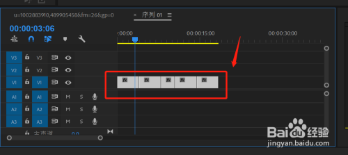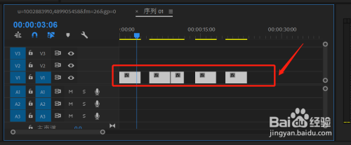 点击视轨,键盘按住Ctrl+A,全选素材。