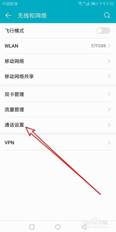 然后再打开到无线和收集的设置页面,找到通话设置的设置项。