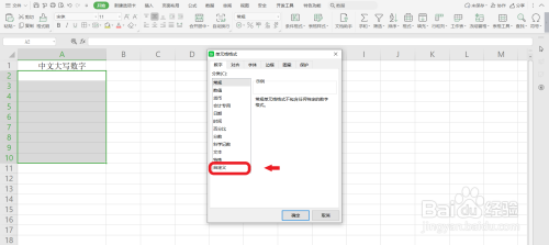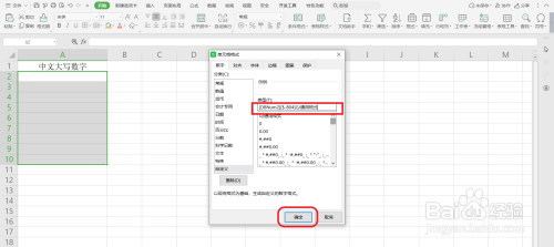 - [4]在类别一栏里从头输入[DBNum2][$-804]G/通用格局。确定。