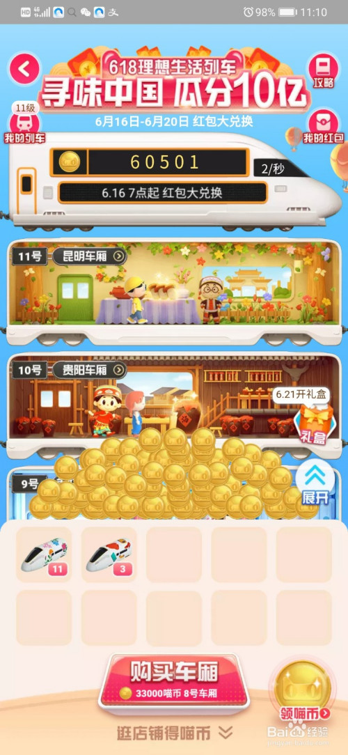 进入活动之后,我们可以进入到列车的游戏界面,右上角是红包,点击打开。