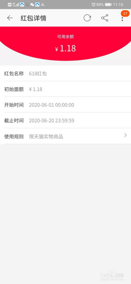 3.获得红包,利用即可。