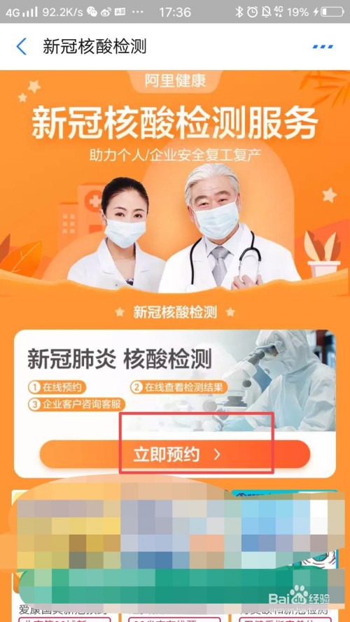 进入首页后,标的目的下滑动,找到【核酸检测】,点击它;