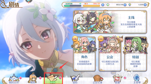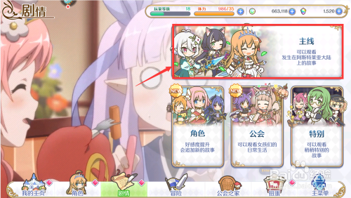 首先,打开公本家儿保持游戏的界面,选择下方的“剧情”选项。