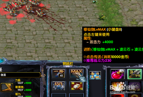 3.给装备进级。