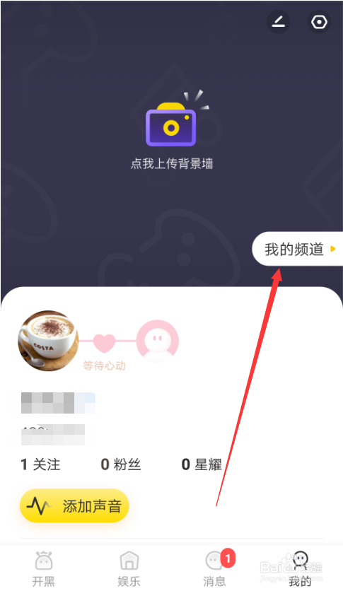 在手机上打开YY手游语音APP后,在我的界面点击“我的频道”。