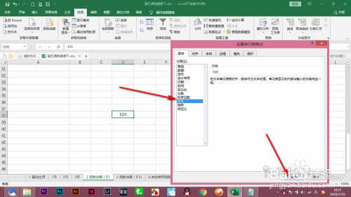 1.当前打开Excel表格输入数据一二三,若是要转换当作文本的话。