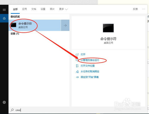 点击左下角的搜刮图标搜cmd然后点一下办理员身份运行