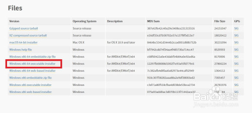 第二步,进入下载界面,找到“Windows x86-64 executable installer”文件下载到路径中。