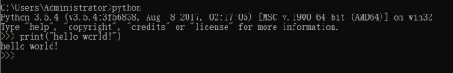 我们输入“print("hello world!")”,正式进入python编程的宿世界。